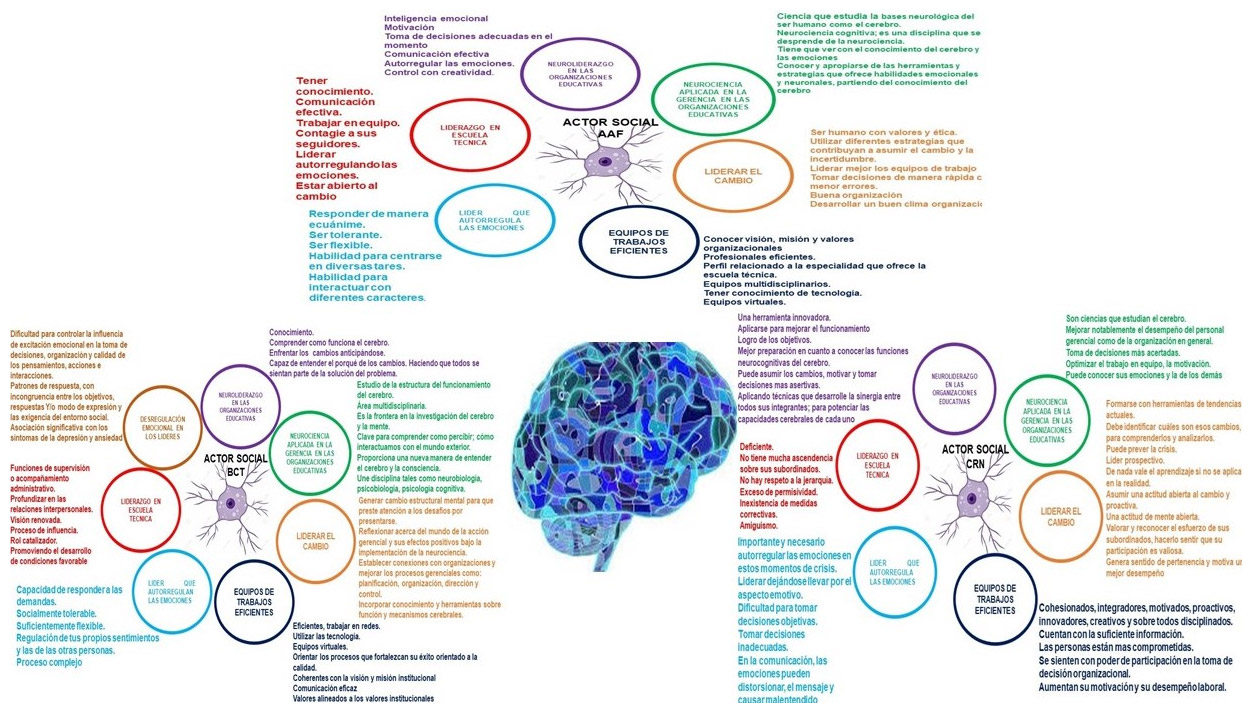 Cabe señalar, que el actor social BCT; refirió “Los avances de la Neurociencia Han permitido como la toma de decisiones representa eminentemente lo emocional; de ahí la importancia de la gestión de los procesos emocionales en las escuelas técnicas”. Partiendo de esto, en la conducción de las organizaciones del nivel media técnica, confronta diferentes situaciones, que el líder educativo para solucionar debe preparar el cerebro, pensar y decidir en forma más rápida y eficaz, acorde a la necesidad que se presente.